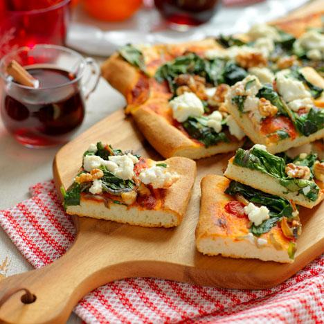 Pizza med fikonmarmelad, ost, päron och valnötter