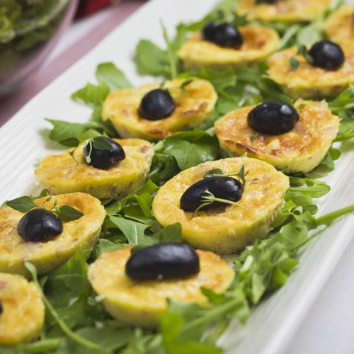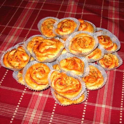 Minipajer utan pajskal med ost och skinka