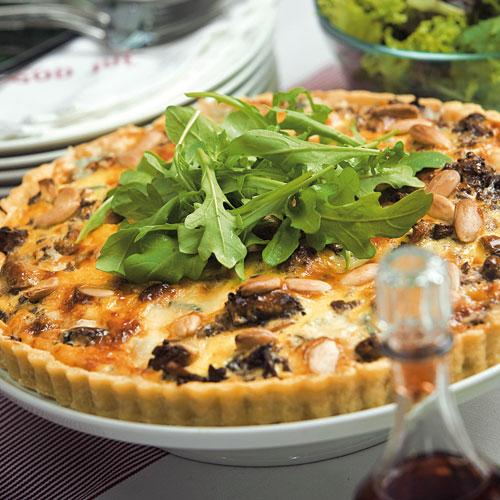 Köttfärspaj med dadlar, blåmögelost och mandel