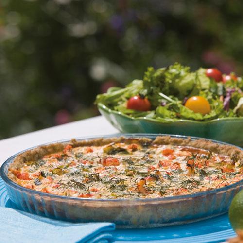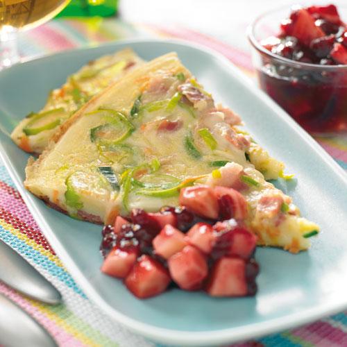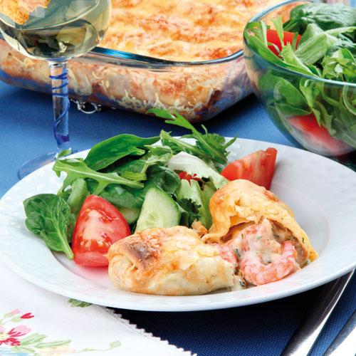 Purjolökspaj med sweet chiliräkor