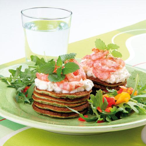 Spenatplättar med keso och räkor