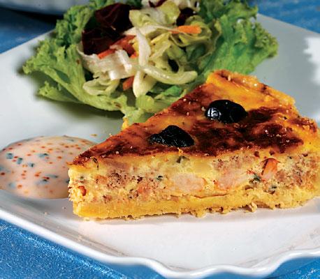 Medelhavspaj med räkor och romsås