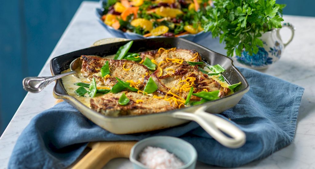 Fläskkotletter i krämig apelsinsås