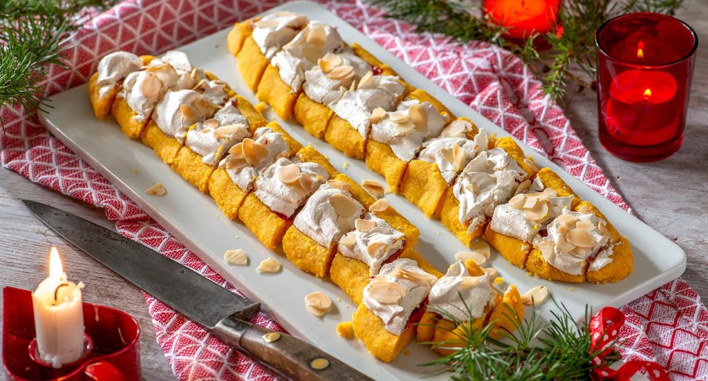 Saffranssnittar med hallonsylt och frasig maräng