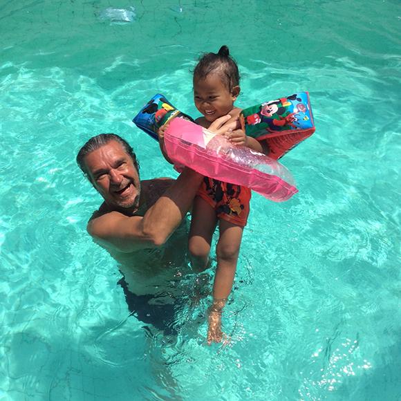 Kjell Bergqvist lär barnen i Thailand att simma
