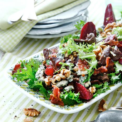 Matig biffsallad med rödbetor och linser