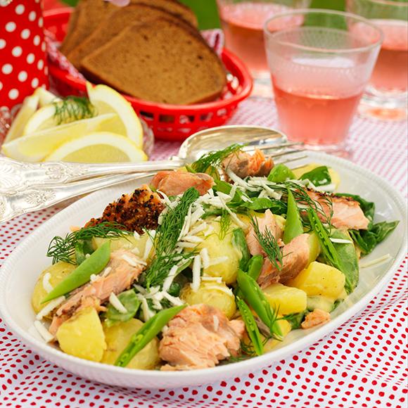 Sallad med varmrökt lax