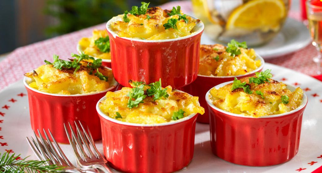 Ostgratinerad potatis med varm bönsalsa