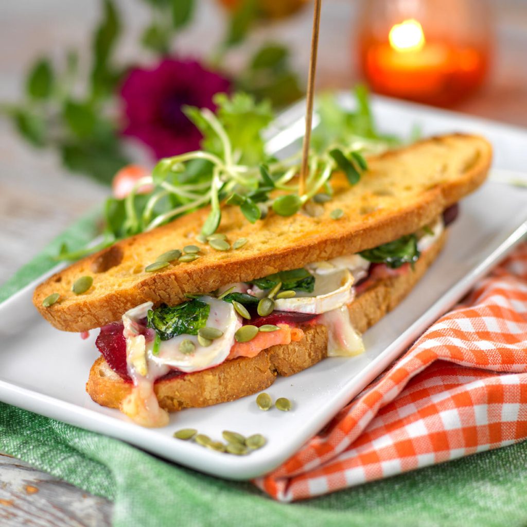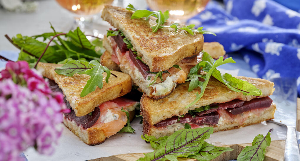 Surdegsmacka med rostade grönsaker och ärtguacamole