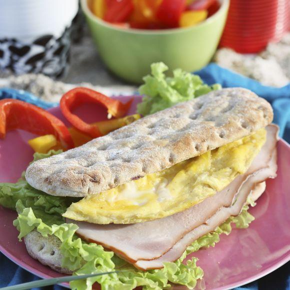 Dubbelmacka med omelett och kalkon