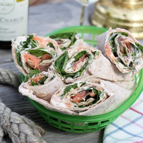 Tunnbrödsrullar med lax och pepparrotskräm