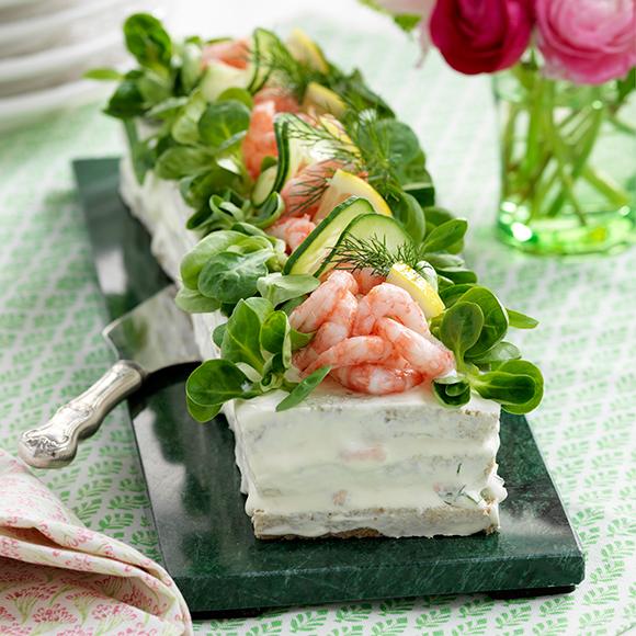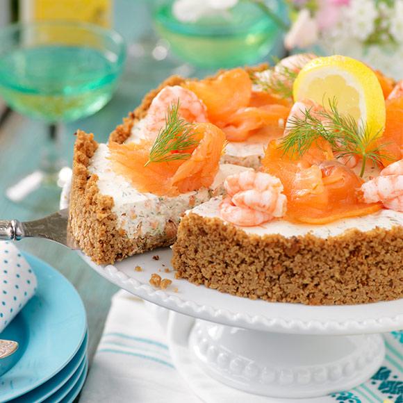 Cheesecake med lax och räkor