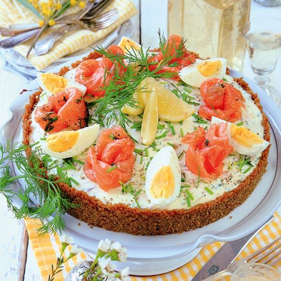 Cheesecake med ägg och gravad lax