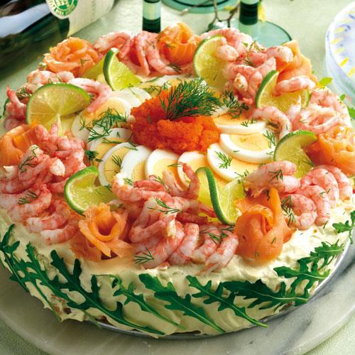 Smörgåstårta med skaldjurslyx