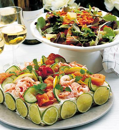 Smörgåstårta med skaldjur och lax
