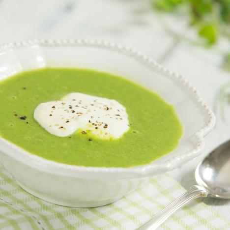 Grön ärtsoppa med pepparrotskräm