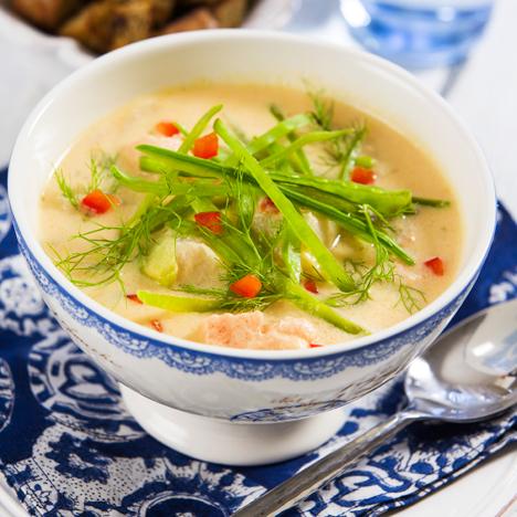 Fisksoppa med brödkrutonger
