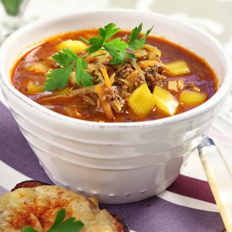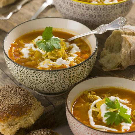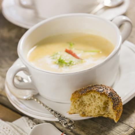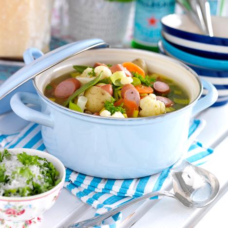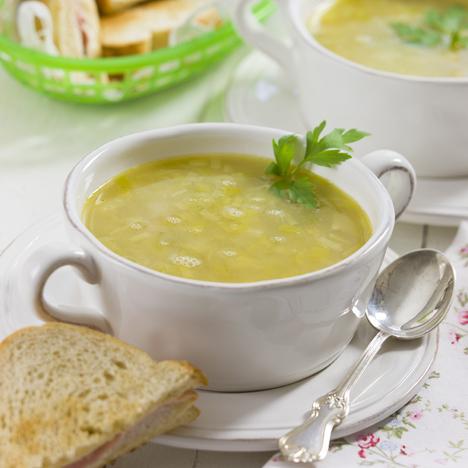 Potatis- och purjolökssoppa med ost- och skinktoast