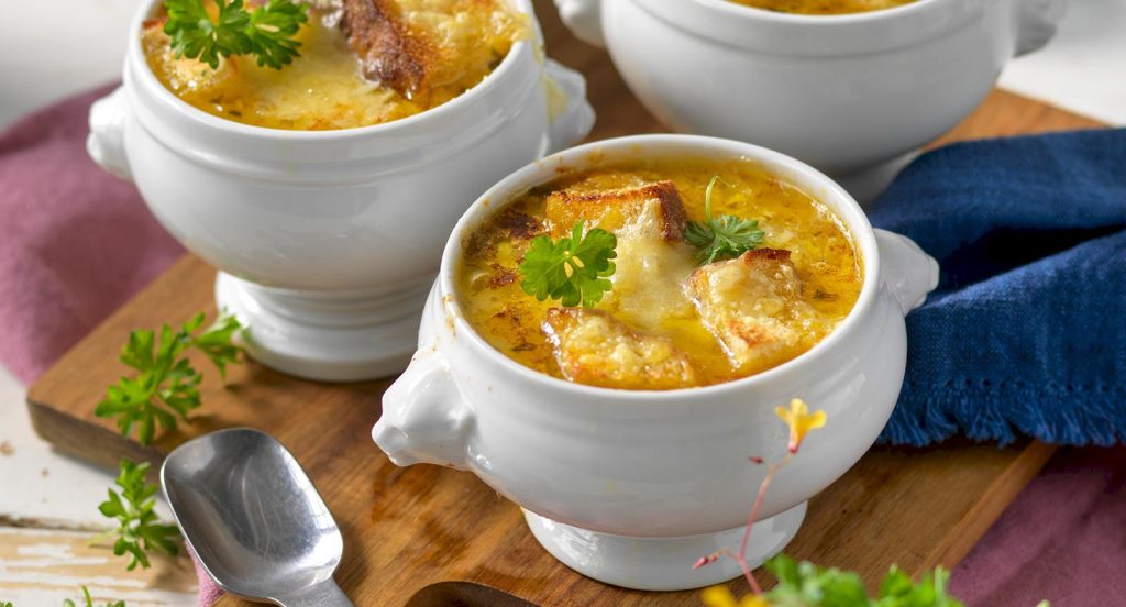 Gratinerad löksoppa med surdegsbröd
