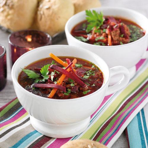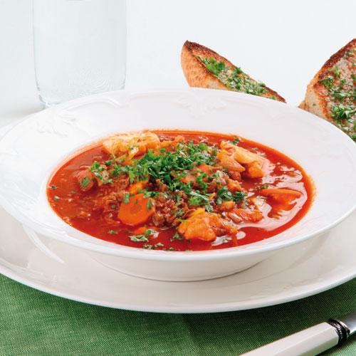 Köttfärssoppa med vitlöksbröd
