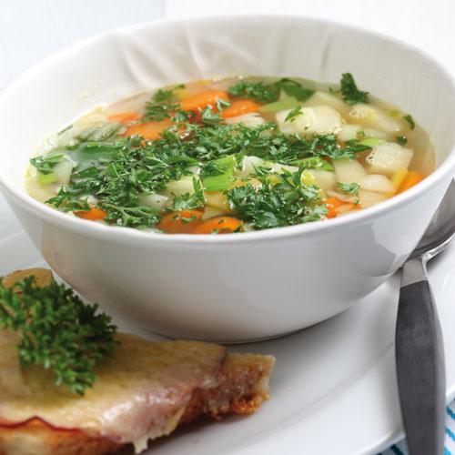 Grönsakssoppa med gratinerad smörgås