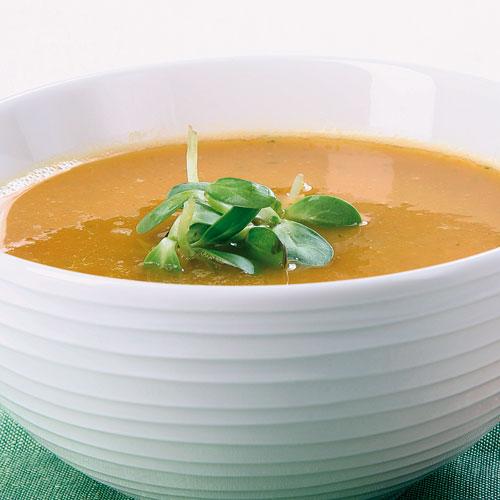 Morotssoppa med bröd och hummus