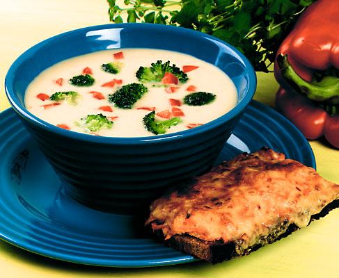 Ostsoppa med broccoli och varm rotfruktsmacka