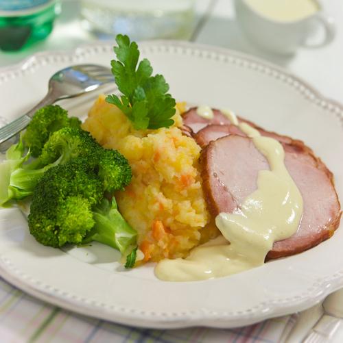 Kassler med rotfruktsstomp och senapssås