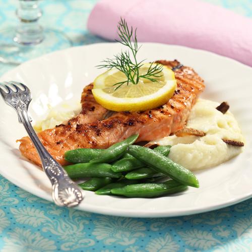 Grillad lax med blomkålspuré med rostad vitlök