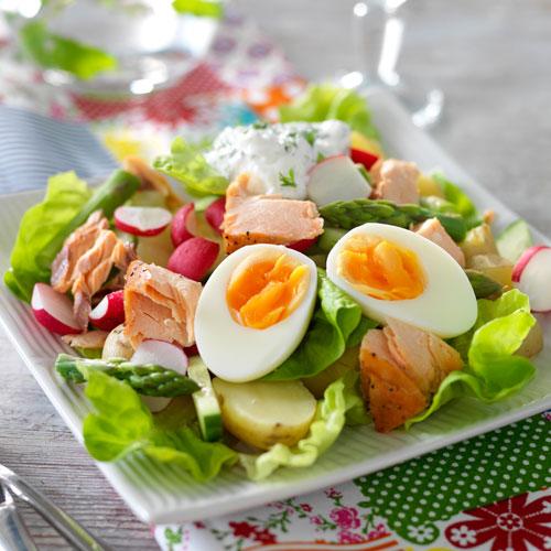 Sallad med varmrökt lax
