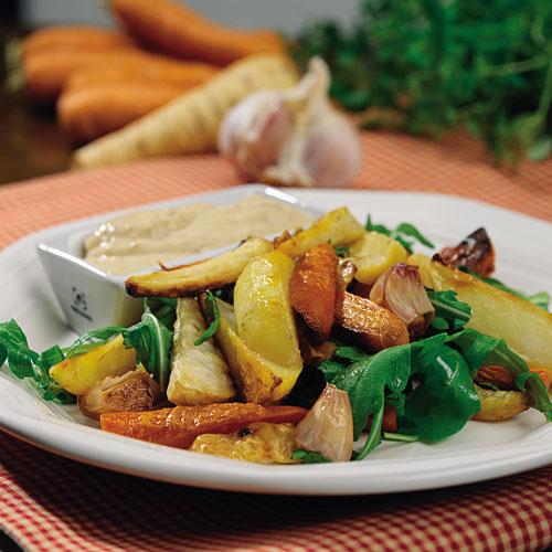 Ugnsbakade rotfrukter med senapskräm