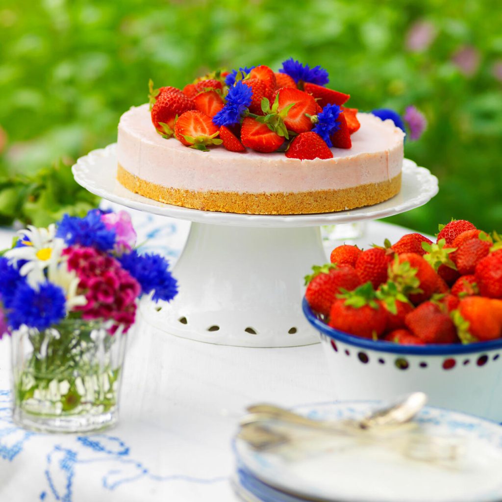 Somrig jordgubbscheesecake