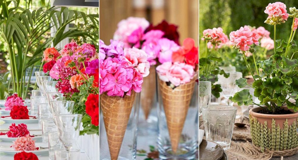 Sätt färg på dukningen med pelargoner – 5 fina idéer