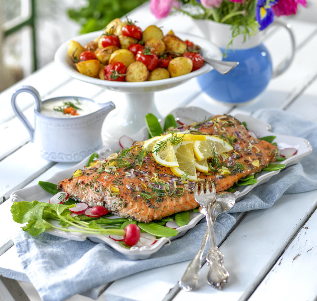 Ugnsbakad lax med färska örter