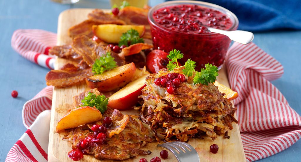 Rårakor med stekt fläsk och smörstekta äppelklyftor