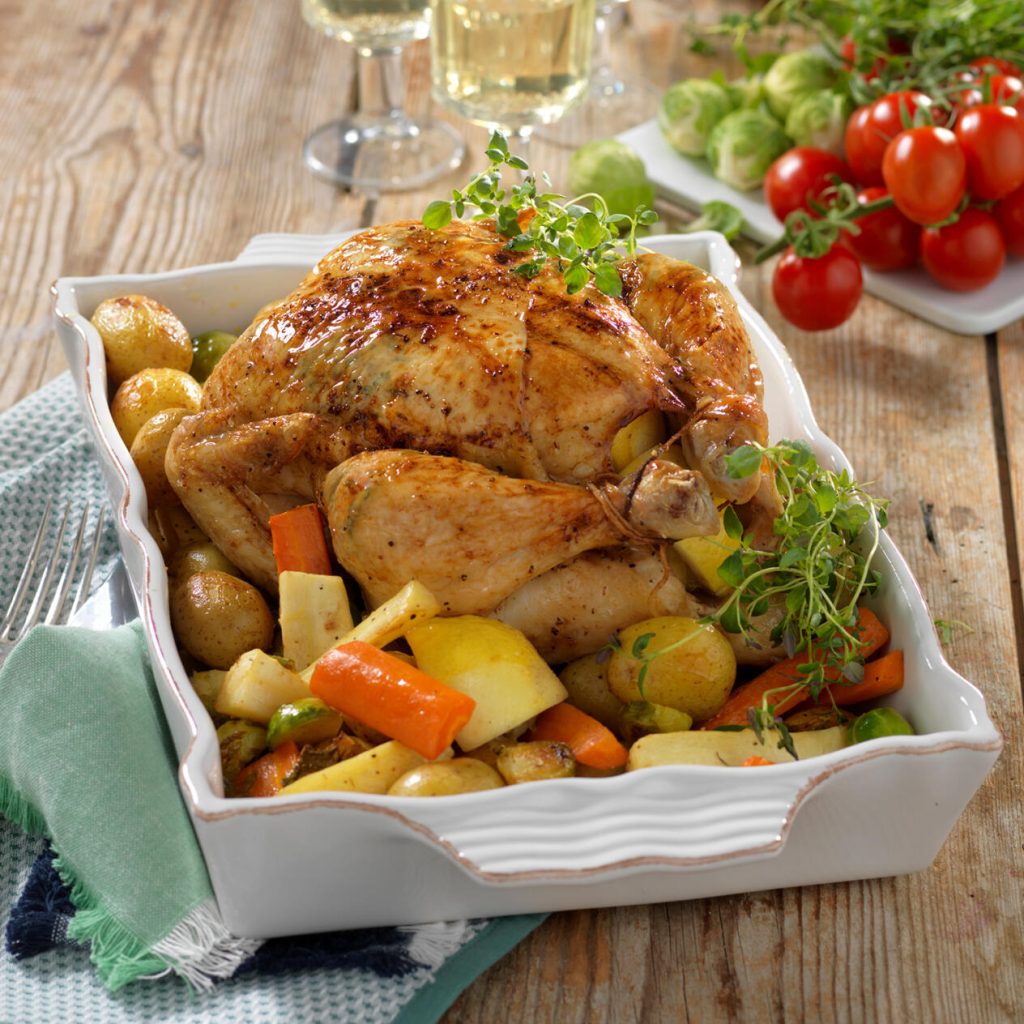 Helstekt citronkyckling med rostade rotfrukter