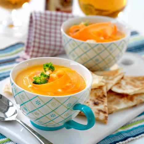 Morotssoppa med tortillasnittar
