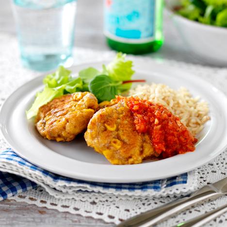 Majsbiffar med tomatsås