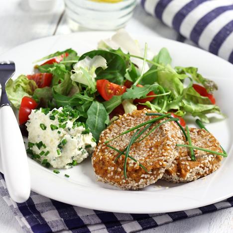 Kikärtsbiffar med fetaostkräm