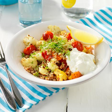 Varm sallad med ugnsbakade grönsaker