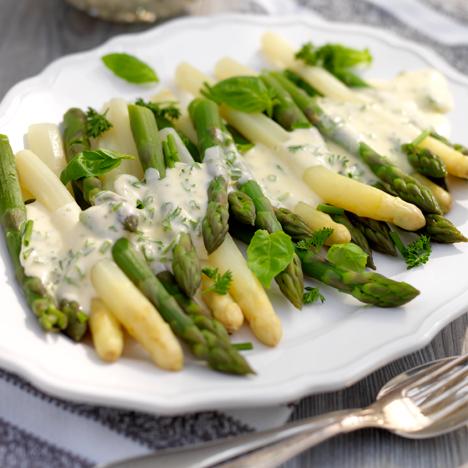 Sparris med örtig moussilinsås
