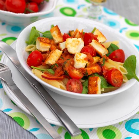 Tomatpasta med halloumi