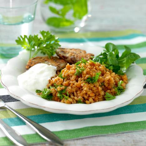 Bönbiffar med tomatkokt matvete