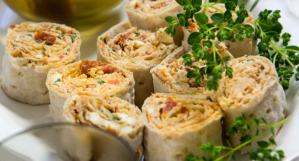 Fetaostfyllda tunnbrödsrullar