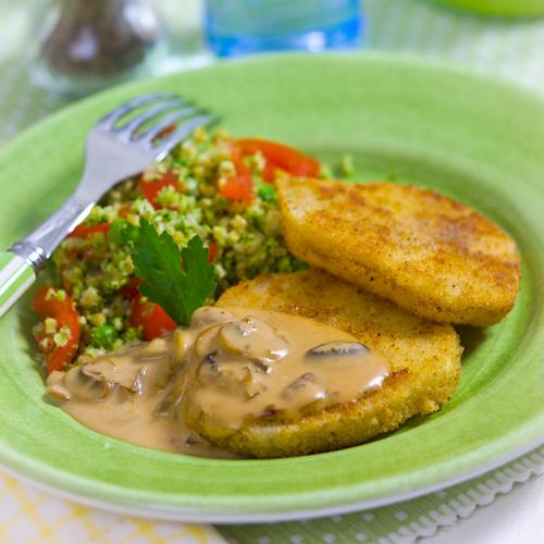 Selleribiff med champinjonsås och bulgur- och broccolisal-lad