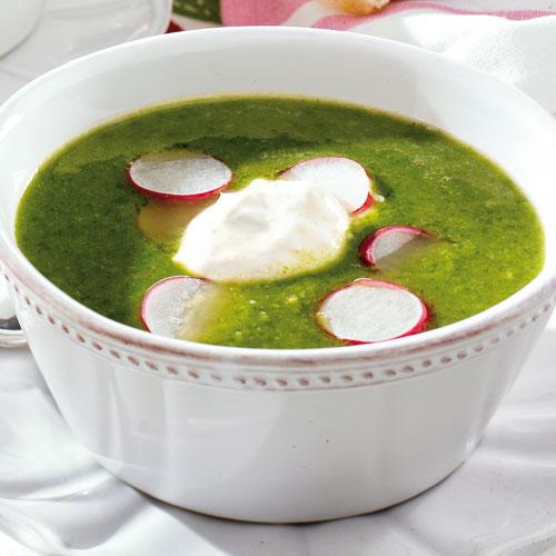 Grön vårsoppa med vitlökskräm