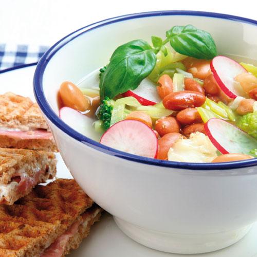 Bön- och grönsakssoppa med våffeltoast