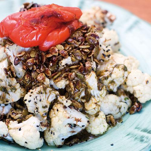 Grillad blomkål med basilikadressing