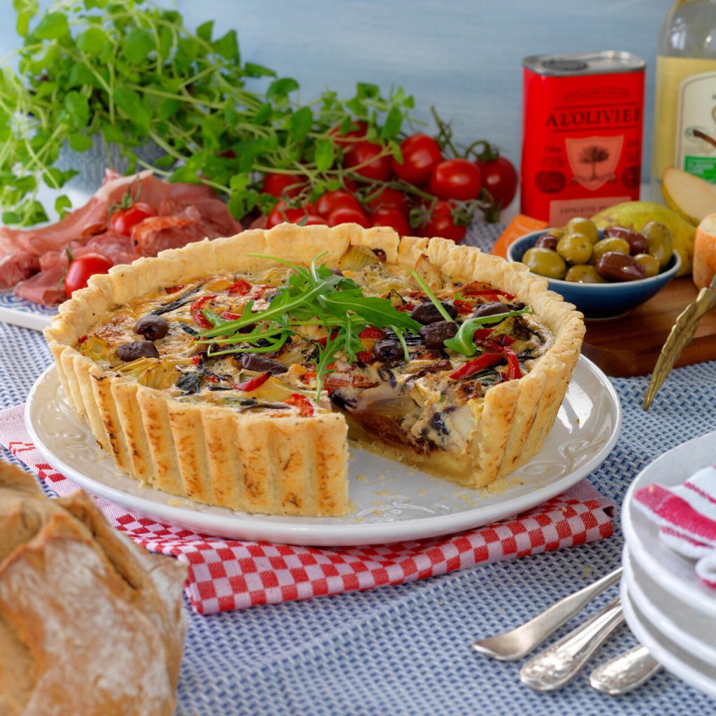 Vegetarisk paj med kronärtskocka och oliver