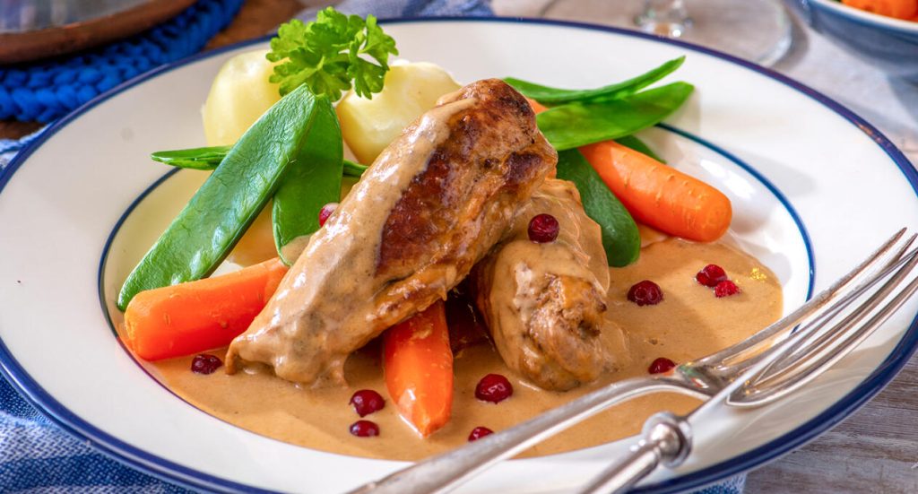 Fläskfilérullader i gräddig sås